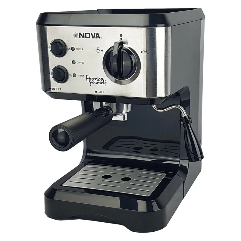 اسپرسو ساز نوا ۱۴۶ یکی از پرفروش ترین دستگاه های موجود ساخته شده توسط برند نوا محسوب می شود. کیفیت طراحی و ساخت اسپرسو ساز نوا ۱۴۶ به گونه ای است که این دستگاه با بهره مندی از گرمای عالی و قدرت مناسب به شما جهت تولید آب جوش و بخار، برای تهیه کف شیر، کاپوچینو و انواع نوشیدنی های گرم می تواند کمک فراوان کند. بهره مندی از قدرت ۱۵ بار بخار به شما یک اسپرسو ساز قوی و قهوه ساز با کیفیت معرفی می کند. این دستگاه از مجموعه دستگاه هایی است که با طراحی ساده و در عین حال بسیار زیبا به کاربران عرضه می شود. از جمله نوشیدنی های قابل تهیه توسط این اسپرسو ساز علاوه بر اسپرسو می توان به کافه لاته و کاپوچینو اشاره کرد. در ساخت اسپرسو ساز نوا ۱۴۶ طراح با قرار دادن سیستم گرم کردن فنجان به کاربران کمک می کند تا تعداد زیادی از فنجان ها را بتوانند جهت نوشیدن گرم کنند.